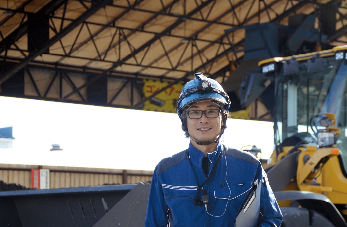 産業廃棄物処理などを手掛ける三光の江島工場で、固形燃料の生産業務を担当している竹内慎平さん。入社して8年目になり、「任せてもらえる仕事も増えたので、期待に応えられるように努力したいです」と意欲を湧かせています。